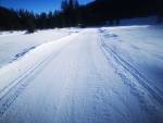 Nejhorší je, že se tu neustále musí sundavat lyže a přecházet přes silnici. Nevím, jestli to jindy při více sněhu jde přejet. Dneska jsem přenášel přes silnici snad 30x / 34km.