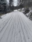 Cesta z Makova na Kasarne neupravena cca 5-10 cm snehu.