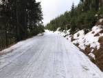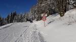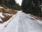 Sněhu je dost. Jediný potok přes celou cestu je na konci sjezdu z Janovy hory na Benecko (za závorou).