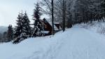 Chtěli jsme dojet autem na Mísečky na parkoviště, ale asi 2,3 km před Mísečkama je na silnici zákaz vjezdu. To vedlo k tomu, že všichni zaparkovali (tedy až na pár ignorantů co jeli dál) na parkovišti před zákazem a pak šli 2,5 km po silnici s běžkama v ruce... (dá se to "zkrátit" po sjezdovce která je cestou, od horního konce pomy se dá po vrstevnici jet "stopou" až na mísečky, takže člověk po silnici šlape jen jeden km).