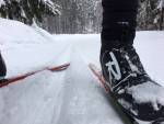 Vzhledem k počasí zapadaná trať, ale stopa projetá od běžkařů, hůlky se neprobořily pod krustu starého sněhu. Na bruslení nevím, těch pár metrů, kdy jsem opustila stopu, to šlo, sníh je prašan a pod ním je tvrdý sníh.