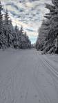 Včera ještě hančovina od parkoviště v Malé Úpě, přes magistrálu až nad Spálený Mlýn. Dalo se s opatrností sjet až k Dědkovi a bábě. Přes noc moc nepadalo. Dnes již jen projeto rolbou. Nicméně stoupání od parkoviště má málo sněhu, tak to rolba místy vytrhala. Vrchol magistrály až po výjezd z lesa je čistý, od nové lanovky po výjezd z lesa dokonce manžestr. Skol