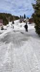 Horní Malá Úpa - U Kostela - Cestník - okruh Dlouhý hřeben: východní cestou na jih, západní zpět - a zpět na HMÚ. Skate. 1.část k Rennerovkám perfektní podmínky. Potom ke kostelu rozjezdene od dopravní rolby, ale dá se (bez stopy na klasiku), sníh ale bude mizet. Od kostela směr Cestník a celý okruh ještě pěkný, včetně stopy na klasiku, ale na řadě míst již minimální vrstva sněhu/ledu, místy už i bez. Při zvýšení teploty půjde na těchto místech podklad velmi rychle pryč.