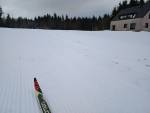 Byli jsme z Pomezek na Kraví horu. Sněhu málo, jako někdy v dubnu. Je to velká bída. Nástupy zledovatělé plotny. Na loukách kouká tráva. Cestou do Malé Úpy že začátku stopa celkem upravená, ale snad jediné 2 km, kde se dalo jezdit. Sjezd ke kostelu často zledovatělý, cestou k Cestníku jsme to na ledě raději otočili, okolo Kraví hory i přes úpravu dnes nebo včera zmrzlá místa a plno jehličí... Ale vypadá to, že to jinde nebude lepší...
