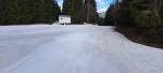 Na Terexu od celnice má smysl nandat lyže tam, co začíná můj GPS záznam - tam zároveň dojela v noci na pátek rolba. Níže je sníh jen 120 metrů od zatáčky. Stopa na klasiku byla i v sobotu po poledni ve výborném stavu, pro skate závisí na denní době a podílu lyžařů k pěším, kteří se tam pohybují, ale většinou je to velmi slušné. Ráno jsem ještě projel bez přenášení, zpátky už jsou 3 metry 300 metrů na začátkem úpravy asfaltové. Viz poslední fotka. V neděli se asi budou přenášet další 2 velmi krátká místa. Celkově Terex super.