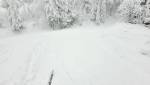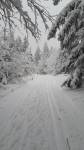 Ze sedla na Suchak. 5-15cm. Je to jetelne na starsich lyzich, misty leze podklad, kameny, sisky, ale svezeni pekne. Zpet jsem od krizeni jel zbabele po silnici 😃