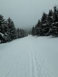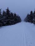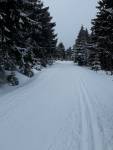 Mezivrší - Anenský vrch - Hanička (bunkry) - všude min. 20 cm sněhu, kromě jednoho místa, kde se muselo opatrně po straně cesty, úplně bez problémů. Pouze klasika - měkká stopa po jednom lyžaři..Kupodivu docela rychlé.