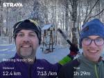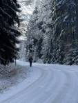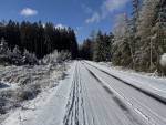 Jeli jsme od hlavní silnice na Hostomice po hřebeni přes Stožec k raketové základně a zpět. Na ledovém podkladu byla vrstvička sněhu, ideální stopa byla podél krajnice, dalo se bez přenášení po celé trase. Uvidíme jak to bude vypadat zítra.