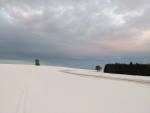 Dnes na ledovci lyzovani za větrem, stopy sice nezafoukane, ale dost rozšmatlany, hold poslední úprava v neděli. Pas na bruslení hrbolate, skoro není, po cestě ze 3 studní i proslaple od pesaku. Skol