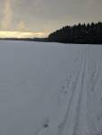 Stopa jen prošlápnutá od lidí, často bylo potřeba se řídit podle mapy.cz a vybrat si tu správnou. Sníh těžší ale nelepivý, teploty lehce pod nulou. V úsecích přes les trčí ve stopě větvičky a jiný rostlinstvo, ale asi ne tak, aby zvlášť poničily lyže. Moje první svezení této zimy.