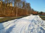 vyřízlá stopa na klasiku, úpravený a umrzlý "manšestr" na skate, čistý přimrzlý umělý sníh po celém 750 m dlouhém okruhu u Českého mlýna u řeky v Jihlavě v 490 m.n.v., prostě excelentní ranní podmínky díky úpravě Lyžařského Jihlavska.