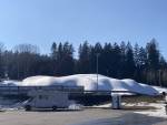 Aréna dnes ráno. Ikdyž byla noc cca 5°C nad nulou a do toho trochu zapršeno, tak povrch přituhlý, přiměřeně rychlý. Na stadionu sněhu viditelně ubylo (zbylo cca 25-30 cm), pás podél střelnice se už nejezdí. Tratě pořád upravené a jetelné v celém rozsahu. Lokálně dost špinavé (nejhorší okolo malého lesa ve sjezdu k tunelům).