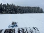Technika vyráží dnes rano na trať. Ve Svratce mírně sněží A alespoň dole tolik nefouká…