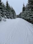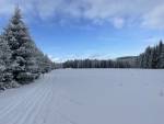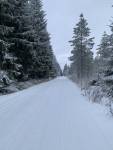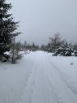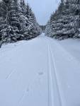 Cínovec-Vitiška dnes nad ránem upraveno. Takže jasná volba. Na Cínovci meluzína jako blázen a sněžení. Louka od golfu k závoře, jako by se neupravovalo. Závěje kam se podíváš. Ale při tom fukejři se není čemu divit. Trasa dobrá, pouze už i ráno po 8. zasněžená a měkká. Při bruslení se to dost zařezávalo do čerstvého sněhu. Stopa výborná. Podklad veškerý žádný, tak hůlky sem tam až na asfalt. Každopádně velké díky rolbaři 👏🏻