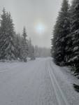 Dnes od Pomezí k Vitišce dvakrát tam a zpět. Ráno v 8 paráda, upraveno jak bylo už včera avizováno. Během dopoledne sněžení a sníh s deštěm. Na trase místy mlha. Cínovec při návratu… 2 metry viditelnost. Ale jinak celkový dojem vynikající.