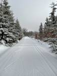 V 7,30 ráno ve stopě z DL směr Fláje... Vilejšov... Vysoká Mýť... DL. Vše skvěle upraveno na klasiku i skate. Trochu z noci nově nasněženo. Při odjezdu začíná opět sněžit.