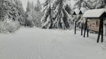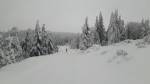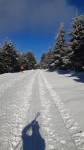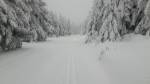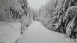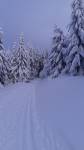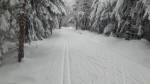 Z Pěticestí na Mezivrší po Bunkrovce - stopa na klasiku prošláplá (a zatím nerozdupaná od pěšáků), ale cca 500m před parkovištěm popadané stromy (obcházení velmi nepříjemné).
