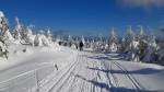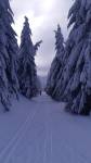 Počasí exkluzivní (tep. mezi -10 až -3°C), bezvětří, ideální viditelnost (Krkonoše, Králičák, Rychlebky,...), sníh pod cca 850m mizerný (ledová stopa, ledové plotny + jehličí), nad 850 m paráda, sníh přemrzlý, ale stopy na klasiku celkem kvalitní a v pohodě (bez problémů se dalo mazat, vzhledem k přemrzlému sněhu se máza rychleji sjížděla), na skate myslím taky OK.