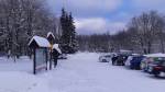 Parkoviště na Mezivrší cca v 8:45 úplně prázdné (4 auta).