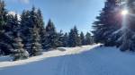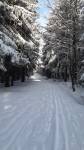 Zpátky přes Korunku - první úsek bez úpravy jenom prošláplá stopa na klasiku (zimní pohádka :-)) - cca ve 2/3 popadané stromy (obcházení dost nepříjemné), takže rolba nemohla projet, za stromy až ke Korunce a potom na Pěticestí čerstvá úprava (ten den asi nejlepší úsek), takže OK (pro skejt i klasiku).