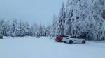 Celou trasu minimum lidí (i na V.D.), cestou ke Korunce vůbec nikdo, i při odjezdu po 2. odpoledne bylo na Mezivrší jen pár aut (cesta po silnici nahoru trochu horší, ale dalo se bez řetězů i s předokolkou).