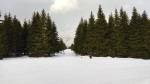 Stopa mizela akorát nahoře u Rokytna, kde byla zafoukaná, bylo lepší jet podél lesa kolem penzionu U Martina.