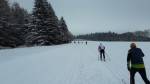 Celý den pod nulou, zataženo, nahoře u Studnic mlha. Od víkendu připadla vrstvička nového sněhu a podmáčená místa na trati zmrzla. Po celé trase stará úprava ze začátku týdne, už trochu rozježděná, ale tvoří pevný, zmrzlý základ, na soupaž dobrý.