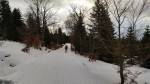 Hanička - zatáčka nad srubem U Obrázku: s opatrností nahoru sjízdné - střídají se vytátá místa, ledovaté úseky a čistý sníh (na světlinách) - dolů jsme šli raději pěšky