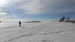 Pod nulou, zataženo, sníh prašan, povětšinou bez podkladu 15 - 20 cm, někde je naváto i více. Pole jsou zmrzlá, takže i skrz solidní vrstvu sněhu lyže dost škrtají o hroudy, pokud překonáváte nějaký zoraný úsek pláně. Na loukách bez problémů.