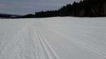 Překvapivě dobrý úsek stadion - U buku, mělká stopa, občas plotny, ale sjízdné. Špatný úsek k rozcestí U Nové louky - vytátá místa, led a odvodňovací rýhy přes cestu. Pak chvíli dobré, poprášená vrstva ledového základu. Kolem Nové louky směr Blaťiák špatné, dá se objet po trávě, uprostřed špína. Dál nad Blaťákem už víc sněhu a hlubší, pevná stopa - ještě tu a tam led, ale už to bylo pěkné.