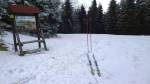 Od Pece se dalo nasadit běžky. Kolem tyčí ale prošlapané od pěších, takže občas kličkování mezi kosodřevinou. Vrchol Vysoké hole už tráva, nutný traverz nad Velkým kotlem. Sníh dopoledne lehce přimrzlý. Sjezdovky nad Ovčárnou samozřejmě neupravené, ale sněhu dost.