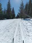Jel jsem ze Smědavy na Knajpu po Štolpišské a hned ve stoupání jsem se nalepil na skluznici, inu nahoře jsem kreditkou srazil nalepený sníh a pak už to jelo. Nádherné počasí, trasy dle úprav stále dobré. Je však již znát síla sluníčka na trase mezi Pánským domem a Pešákovnou, jsou již některá místa na cestě bez sněhu , objížďka po louce podle stop od lyžníků, pak již Jizerská v pohodě. Více info v popisu od Honzy 1949, který dává super info o aktuálním stavu tras a ty co jsou z dálek toto oceňují. Díky