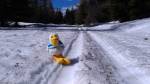 Drželi jsme se Honzova doporučení, (tímto děkujeme!!), pendlovali jsme mezi Mořinou a Kioskem po Promenádní, přenášení není nutno. Od Kiosku směrem na Mořinu luxusní trasa, jinak občasně ledová místa nebo prosvítající asfalt.
