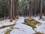 Kolem hory Jizery (Ke Studánce, Smědava) až ke Knajpě - hodně lyžařů, více rozježděně, ale všude dostatek sněhu, stopy čisté.