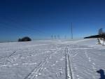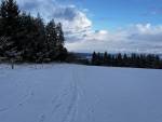 KOZLOV: na Kozlovských pláních je spousta od lidí vyšlapaných stop. Sněhu 5-15 cm. Na zmrzlou vrstvu napadlo několik cm prašanu. Často leze tráva a větvě, takže na nové lyže ne, ale taky ne na kameňačky. Stopy jsou krásně rychlé, modrý vosk držel krásně. Na stopovač je to asi malá vrstva, ale podle mě na uhlazení skůtrem na bruslení by to šlo.