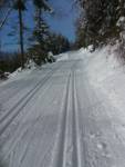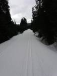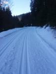 Pustevny-Martiňák, dojel jsem až na t rozcestí (Bařiny), 0,5 km nad Martiňákem, lyže sundány tak 3x, dohroamdy možná 70 metrů. V noci si to sedlo, takže slušné. Lyže s mohérovými pásy. Potkáno pár běžkařů a pak pár kusů dobytka. Cesta má 4 metry šířky, musíte jít zrovna po 30cm široké stopě. KDyž fyzicky nezvládáte jít někde ve sněhu po turistické trase, tak si počkejte, až staje sníh či jděte na nějakou asfaltovou stezku.