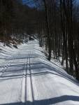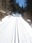 Všude krásná stopa. Šlo vidět, že stopy pokračují na chatu Mír, ale tam určitě až na chatu nedojedete, s klesáním sněhu hodně ubývá.