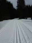 Dnes pondělí po obědě: svítilo červeně parkoviště na Pustevnách, pak mi někdo říkal, že není pravda, ale věřím info tabuli. Tak zvolena uklouzaná příjezdová cesta na Martiňák. Na Pustevny oživit klasický styl, lyže s kobercem držely výborně, ale stopa rychlá, v případě kondičních možností lze dobře i soupaž. Kilometrový úsek směr Tanečnice pěkný. Rovněž fajn stopa na okrut Skalíkova louka.
