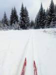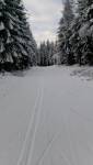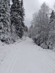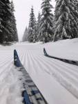 Z Jizerky 13 km okruh, pršelo, ale stav trati překvapivě dobrý. Žádné vytate úseky pouze občas jehličí či šišky v trati. Pěkná lyzovacka to byla.