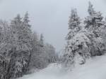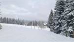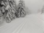 Teplota -1°C, 8.15 hod., sněžení, cca 45 cm sněhu, z toho asi 6 cm sněhu nového, pod novým sněhem výskyt ledovky…