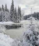 Na Kvildě je zataženo, drobně sněží, fouká čerstvý vítr, celkem kolem 40 cm sněhu, přes noc připadlo 5 cm nového.