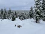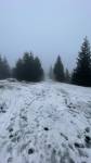 Rano z Maliniku, po Vladni, vypadalo to na upravu rolbou, ale hrazny vesele jezdi autem a celou cestu mu odpadava spinavy snih z podbehu. Severni stranou na Olivetskou, zde se vyrazne zlepsil stav zlabu, cca uprostred stoupani jsou v prave stope kaminky. Dale pres Hrebinek a Mari na Knejpu, pres Rozmezi zpet do Bedrichova. Snehove podminky dobre, stridalo se snezeni s mrholenim, teploty mezi -1 at +1 st.C. Skol.