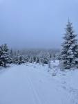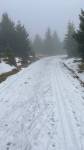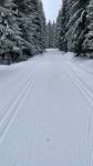 Vyrazil jsem z Perninku po magistrale, 1. kilometry byly chude na snih, casto koukaly kaminky a vetvicky, od Hamerske silnice uz skvele upravene - siroky pas a 2 stopy, na Jeleni se musi po silnici az nad hospodu, ktera je vypluhovana na kost, pak az na Rolavu skvele. Celou cestu drobne snezilo, snad se podminky, predevsim v lesnich usecich, jeste zlepsi. Skol