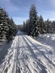 Dnes opet po Vladni k Zavoram a sjezd na Cervenou ruku, zde nebylo upraveno, stejnou cestou nahoru a dale smer Kubenkova chata, pozor v lesnich usecich kaminky, stopy ciste. Po patecnim projeti trati, vetsina stale v dobre kondici. Skol.