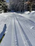 Od Maliniku po Vladni, gang vodohospodaru opet po nedelnim snezeni nechal tuto cestu prohrnout na kost, da se jet, ale je mnoho mist na asfalt resp. s kaminky, za odbockou nad prehradou uz ujete rolbou, dale smerem k pritoku obcas kaminky, i ve stope, ke Gregoraci uz slusne, smerem k Hrebinku par nebezpecnych mist v bruslicim pasu, Mari mydlo, ale jelo skvele, Panelka lepsi o vikendu, jen by chtělo srovnat hrbolaty bruslici pas. Stale skvele podminky, uzivejte hor. Skol