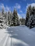 Rano v 9:30 ze Souse, parkoviste prazdne, smer Kurovec, Pod Cernym vrchem az na Vaclavikovu studanku, stejne zpet. Na tratich firn, skatovy pruh az po Jezdeckou dost mekky, jehlici pouze misty, nadale skvele podminky. Skol!