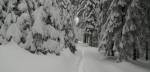 V neděli okruh Košařiska - Ostrý - Slavíč - Kamenitý - Košařiska. Pod mrakem, -5, sníh byl sypký do 50cm, ve vrcholových partiích i s malou ledovou krustou. Stopa od běžkařů, dá se sjíždět na Kozinec, prošlápnutá stopa na Javorový, možné bezpečné sjezdy do Lomné a Košařisk.
