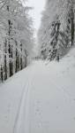 Dnes trasa Mosty u Jablunkova - Girová - Jablunkov. Ráno trasa pokryta cca 5cm nového prašanu, dost lidí, kteří prošlápli zapadanou stopu. Na Studeničném zavřeno, většina se vrací zpět, směr Girová na loukách závěje a nutno udělat stopu i směrem na Bukovec, chata zavřená. Zpátky před polednem přibylo běžkařů i pěšáků, kteří ničí stopu. Do Jablunkova stopa rychlá, při prvním sešupu od ski areálu i kameny.